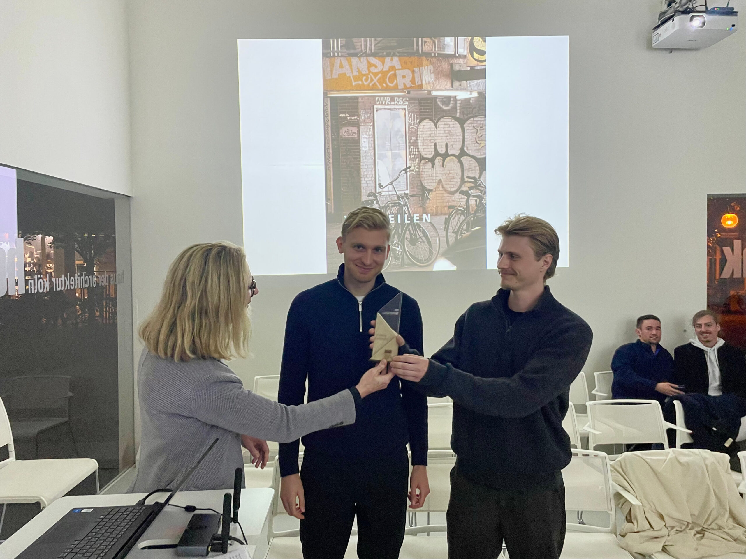 Die Jury setze sich zusammen aus Prof.in Sabine Tastel, Prof.in Yasemin Utku und Susanna Häck (Architektin und HDAK-Vorstand). Die offizielle Übergabe der Trophäen erfolgte am 30. September im Kubus des HDAK – im Rahmen der öffentlichen Dienstagsreihe „Jeden Dienstag eine Stunde Baukultur“.