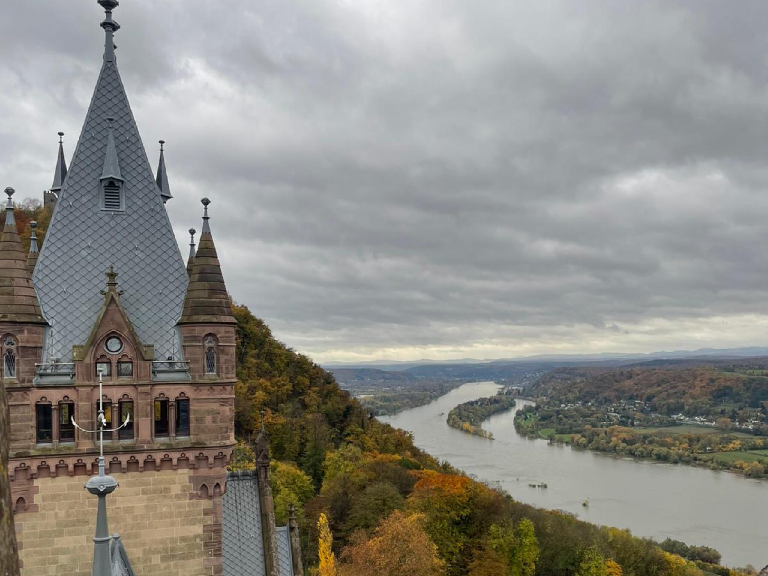 Der erste Ausflug ging zum Drachenfels in Königswinter. Die Studierenden erklommen den Hügel und besichtigten das Schloss Drachenburg bevor ein stürmischer Regen einsetzte. Um sich vor diesem zu retten, konnten sie sich durch den verwunschenen in herbstlichen Farben getauchten Wald, in das nahe gelegene Milchhäuschen retten. Dort kehrten sie erneut zu guter deutscher Küche inklusive Kaffee und Kuchen ein.