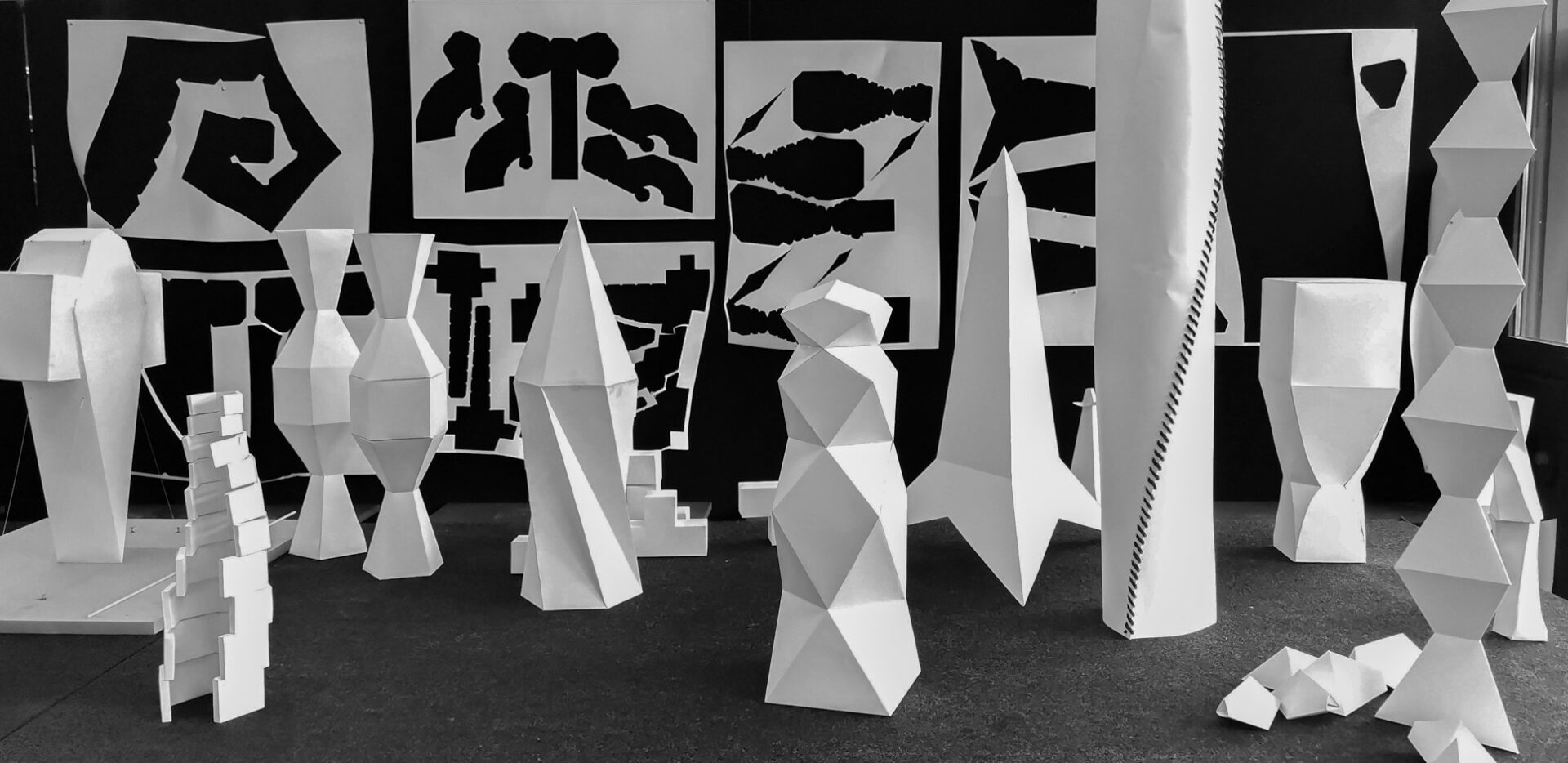 In der Unit LEAR widmeten sich Prof. Michel Müller, Johanna Terhechte und die Studierenden der experimentellen Gestaltung von der Linie über die Fläche zur Skulptur. Dazu sollten unterschiedliche Techniken und Methoden im Umgang mit Papier erlernt und anschließend bei der Übersetzung von zweidimensionalen Grundrisszeichnungen in dreidimensionale Skulpturen angewendet werden. In Zusammenarbeit mit dem Druck- und Papierlabor erlernten die Studierenden die unterschiedlichen Grammaturen und Techniken, wie Falzen, Prägen und Schneiden von Papier, kennen und konnten ihr Wissen bei der Umsetzung ihrer Konzepte direkt erproben. Auch die Fähigkeiten der visuellen Darstellung wurde in der Druckvorbereitung geübt. So entwickelten sich aus den anfänglichen Papiermodellen interessante Skulpturen, bei denen jede eine andere Geschichte erzählte.